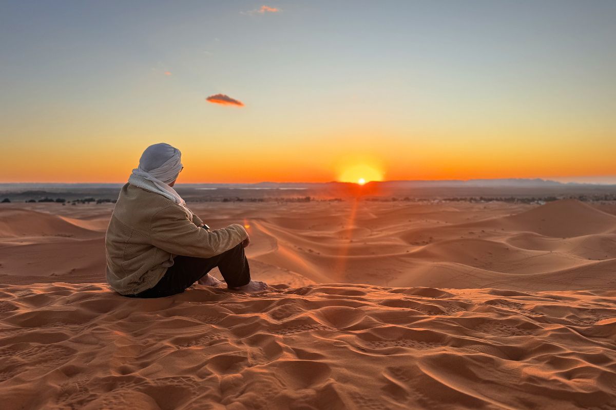 Start your day with an unforgettable adventure. Watch the desert wake up from the top of a high dune in complete tranquility.